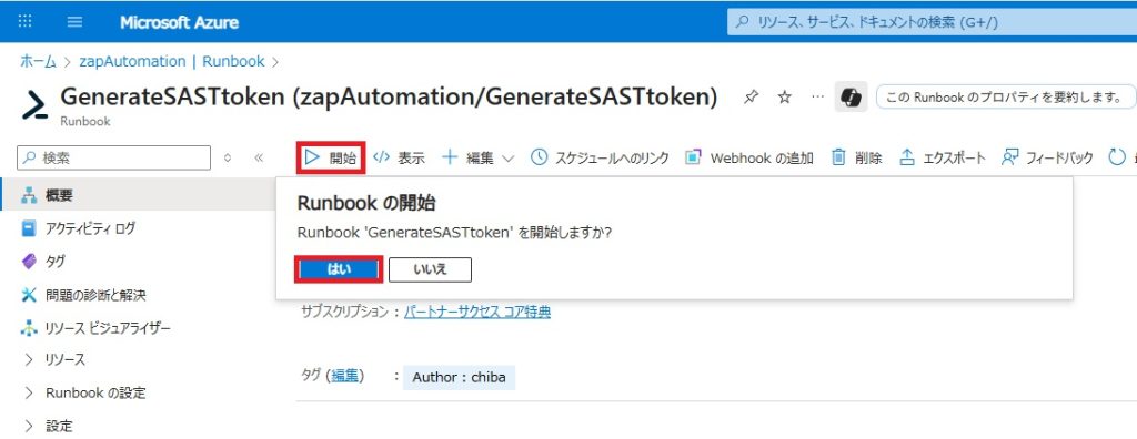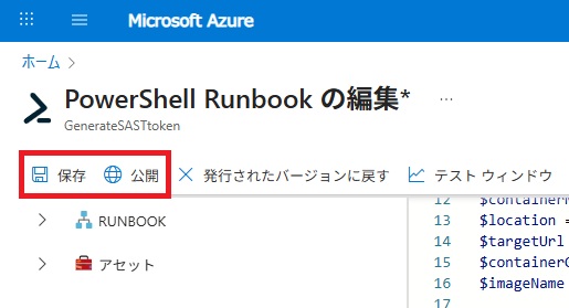 ・RunbookがBlobストレージにアクセスするためのSASトークンを生成する。