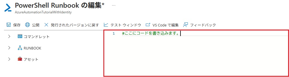コードを書き終えたら編集画面の左上、[保存] -> [公開]の順番でクリックします。