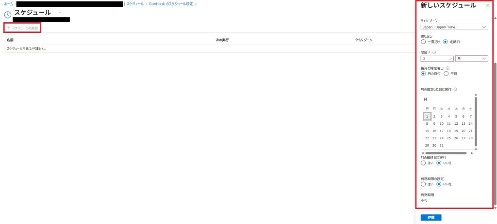 [スケジュールの追加]をクリックすると設定画面が右側に表示されます。