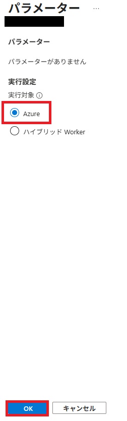 今回は[実行対象]にAzureを選択して[OK]をクリックします。