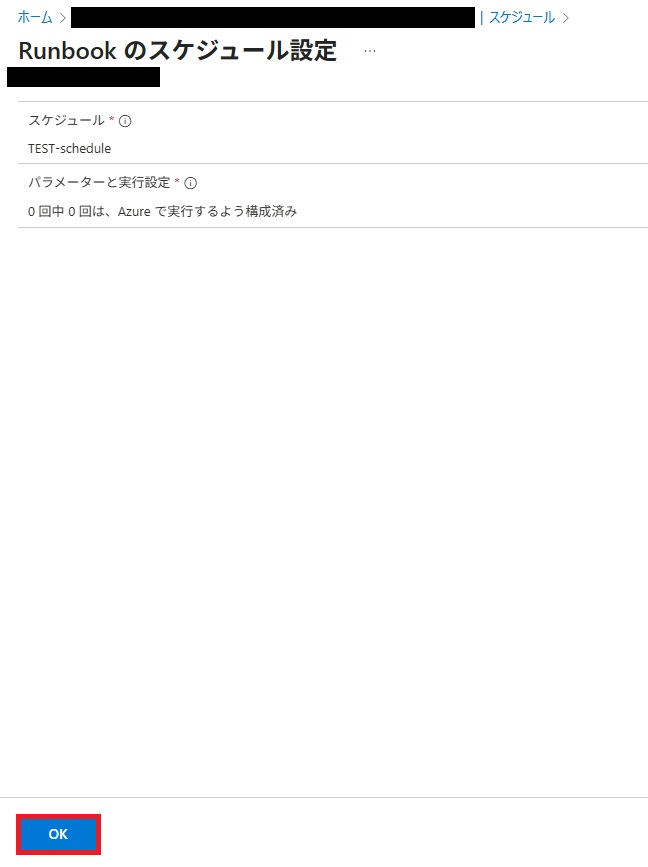 またスケジュール設定画面に戻りますので、ページ下部の[OK]をクリックします。