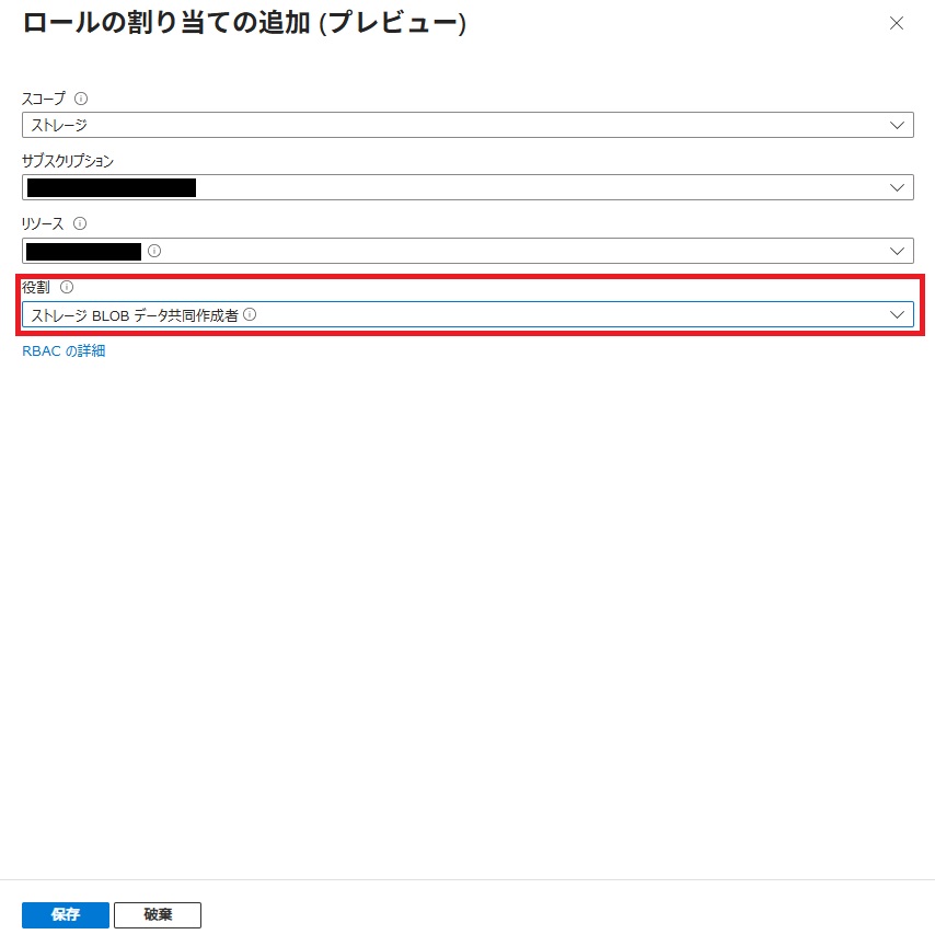 先ほどのACIと同様にBLOBストレージに対して作成や設定変更の権限を持つことになります。
