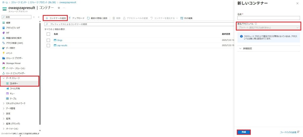 匿名アクセスレベルが プライベートになっていることを確認できればOKです。